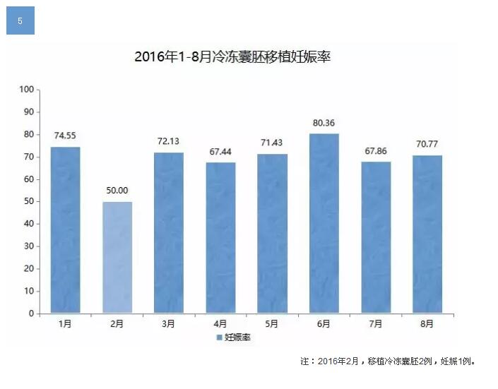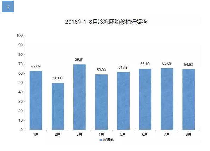 据北京家圆医院辅助生殖中心胚胎实验室负责人徐小明博士提供的数据显示,2016年1月至8月各项数据较高月统计情况为: